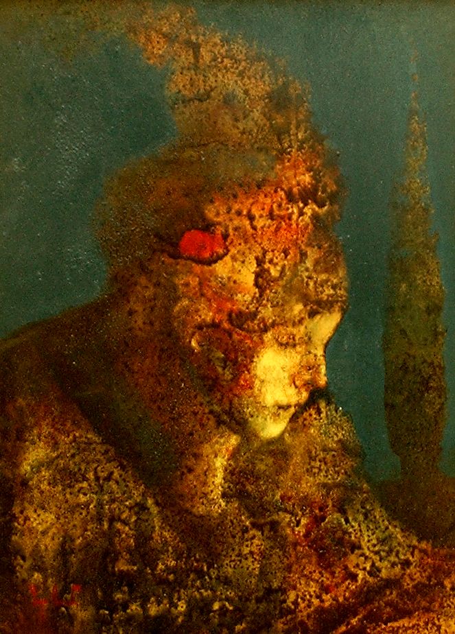 graduadas. Seres extraños, aunque no ajenos a la imagen convencional de una iconografía con larga tradición en la pintura, pueblan espacios imprecisos, en tonos ocres y sienas en los que la luz,un tanto idealizada, pone matices sorprendentes.Francisco Pablos,
