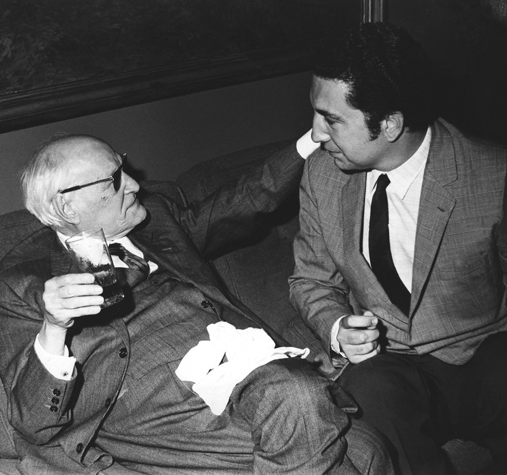 En 1967, mientras dirigía “Claudia”, me entero que Ungaretti estaba en Buenos Aires. Felizmente superé mi habitual timidez, y fui a buscarlo en un cóctel. Estuvo muy afectuoso, me invitó a sentarme a su lado y, mientras charlábamos, sin que yo lo advirtiera, un fotógrafo amigo nos enfocó espontáneamente, por su cuenta. De allí esa foto inolvidable. E imprevista. Estuvo en casa, con pocos invitados, conversamos y me dedicó (con tinta verde) un libro que conservo. Era tan discreto como intenso, y su carácter era más bien un poco cascarrabias. Pero conmigo fue muy dulce. Sigue siendo uno de los grandes recuerdos de mi vida. Como el de haber estado con Saint-John Perse, Juan L. Ortiz, Oliverio Girondo.