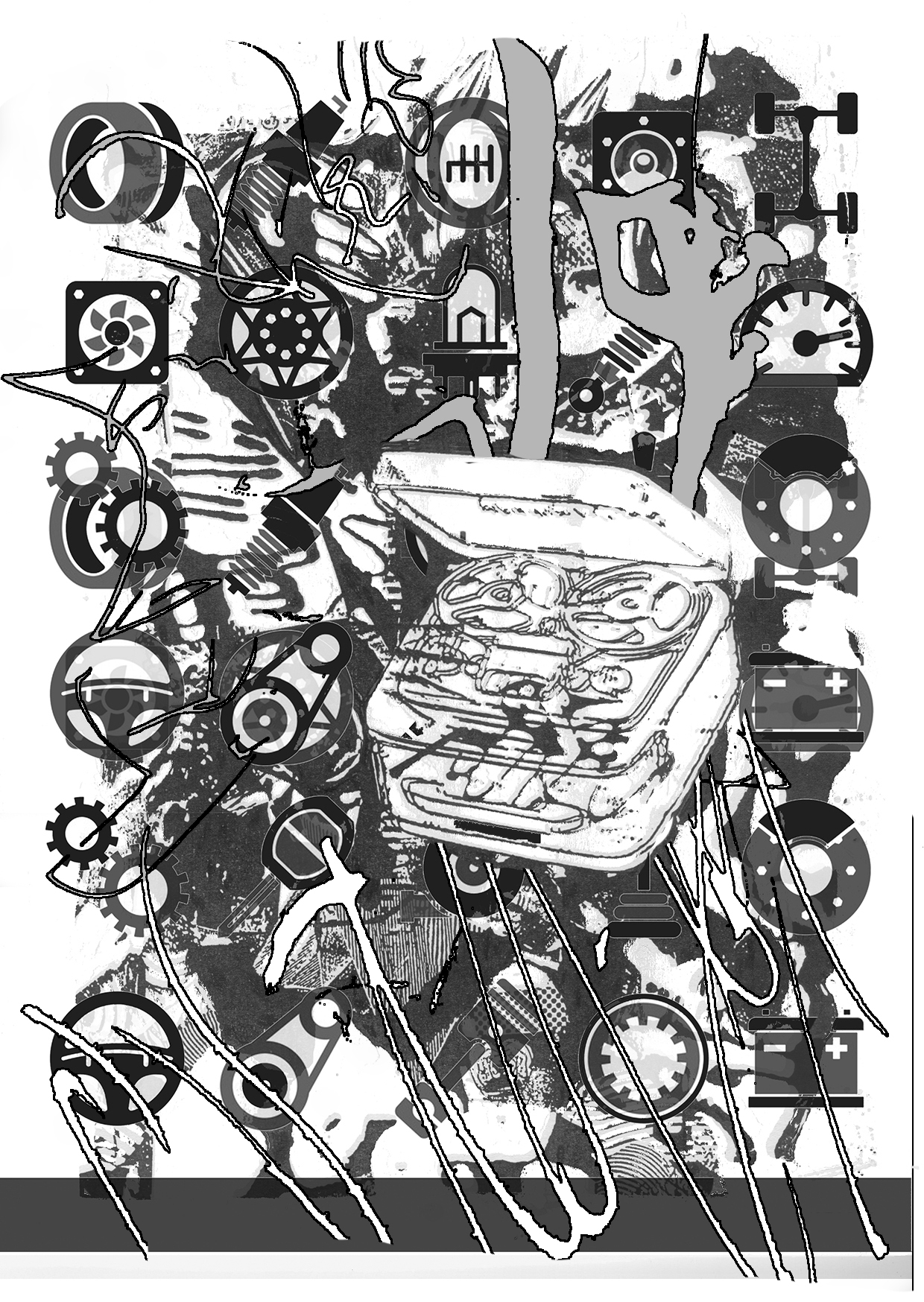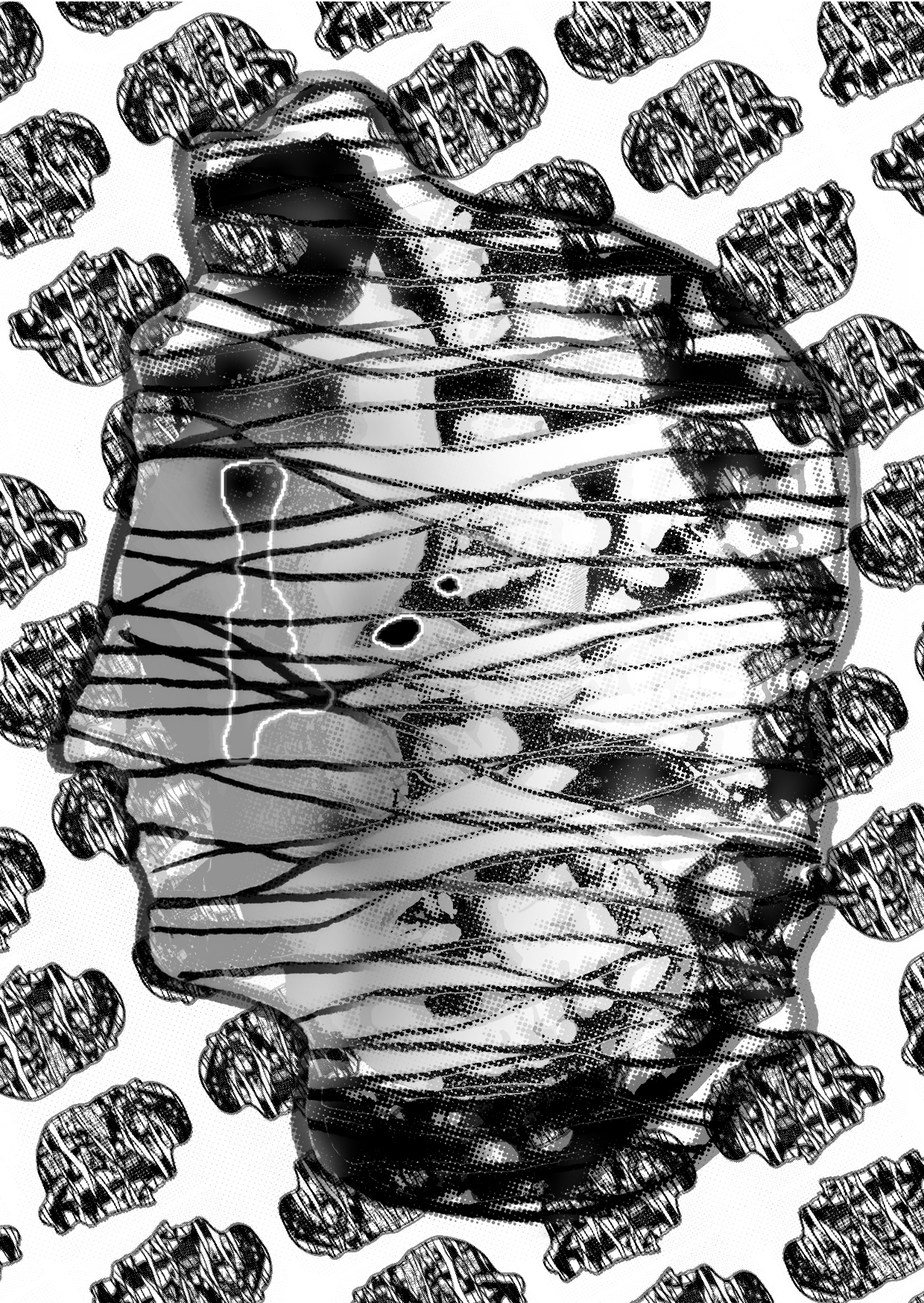 Este trabajo realizado a cuatro manos, se compone de una docena de imágenes en blanco y negro, de tamaño postal, que fueron creadas para poder ser enviadas por correo.
