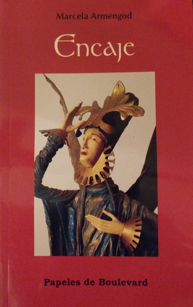 5 — Releí“Encaje”. Y también incita a compartir características de la edición: sólo textos —no en versos— en páginas pares, y en dos secciones: la primera, extensa, nombra al poemario, y la segunda, en dos páginas, se titula “Tabla del orbe”. La ilustración de tapa es una escultura de Dante Taparelli —fotografiada por Hugo Goñi—: “Sara Bernhardt”.