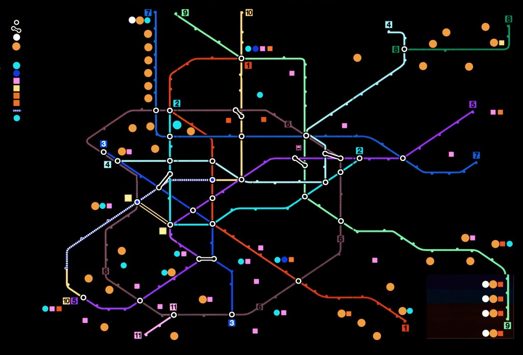 El primer eje utiliza el concepto de deriva psicogeográfica y lo aplica al metro de Madrid: