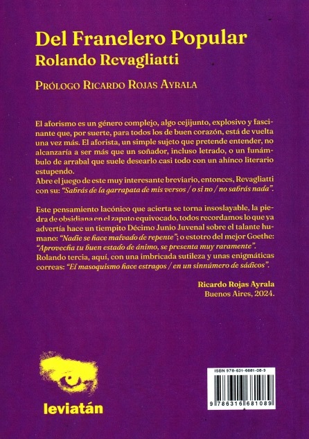 “Del Franelero Popular”, Editorial Leviatán, Buenos Aires, junio 2025, 54 páginas, prólogo de Ricardo Rojas Ayrala, ISBN 978-631-6681-08-9.